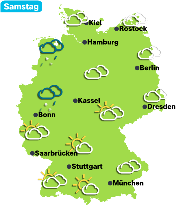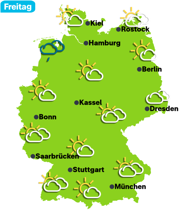 Am Samstag ist es überall sonnig! Im Norden gibt es Samstag und Sonntag zwischen 26 und 30 Grad. Im Südwesten rechnen Wetterexperten mit bis zu 33 Grad, am Sonntag sogar mit bis zu 36 Grad. 🔥🥵 Wenn ihr fürs Wochenende ein paar Tipps braucht, um cool zu bleiben, schaut mal hier: ❄️👇