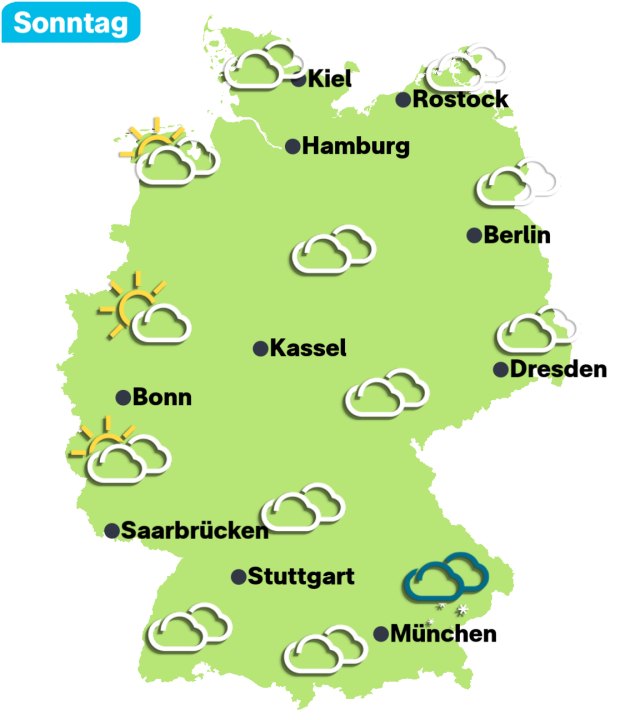 Doch die große Hitze soll nicht lange bleiben. 🌡️🕒 Am Montag gehen die Temperaturen wahrscheinlich wieder deutlich zurück. ⛅📉 Am Sonntagabend könnte es in einigen Gegenden auch schon regnen oder gewittern. 🌧️⛈️ Danach kühlt die Luft ein bisschen ab. Aber keine Sorge: Es bleibt sommerlich. Im Nordwesten wird es dann 21 bis 24 Grad war, im restlichen Deutschland 24 bis 30 Grad.
